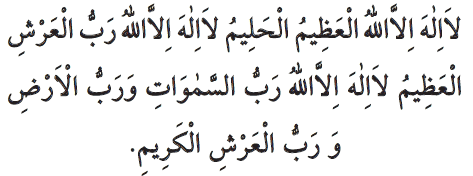 Lâilâhe illâllâhü’l-azîmü’l-halîmü, Lâilâhe illallâhu rabbü’l arşi’l-azîm. Lâilâhe illâllâhü rabbü’s-semâvâti verabbü’l-‘ardı verabbü’l-‘arşi’l-kerîm.